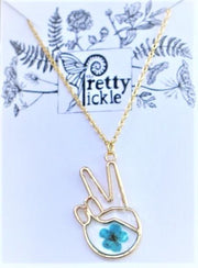 Peace Sign Hand Botanical Necklace